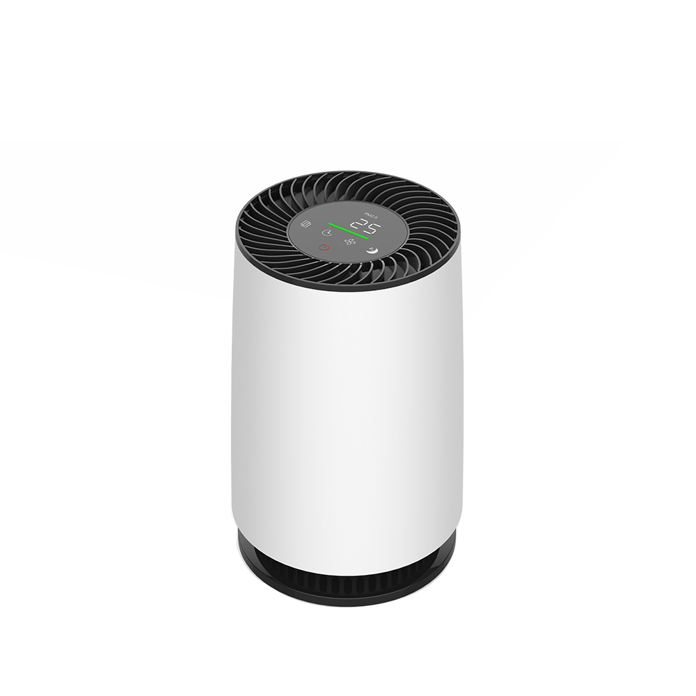 The rounded body of the OLANSI mini desktop air purifier A12 is elegant in its simplicity and artistic. The top touch screen design is full of technology.